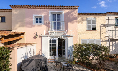 Interesting property in private domain with sea view - nice potential. Villa with a living area of +/- 141 m2 and 3 bedrooms, on a plot of 1310 m2 with heated pool. This villa is located in a small private domain with 2 tennis courts, within walking distance from the centre of Grimaud; the port and beaches of Grimaud can be reached in about 5 minutes; very fast connection to Saint Tropez (+/- 15min) and the beaches of Pampelonne/ Grigaro (+/- 20 min). The villa has a lot to offer: old Provençal floor tiles, fireplace, exposed beams, a pleasant height, a beautifully landscaped garden, south-east exposure, terraces, a heated saltwater pool, tranquillity and stunning views of the hills & the Gulf of St Tropez! The villa Entrance hall, guest toilet, living room with fireplace and access to veranda (large windows) - sea views. Fitted kitchen. 2 bedrooms, dressing room, bathroom. Large terrace overlooking the Gulf; garden with mature trees, including oak, palm and olive trees. Another terrace close to the kitchen in a courtyard shaded by a mulberry tree. Outdoor space Heated swimming pool (salt), with new liner; pool house. Outhouse with 1 bedroom (air-conditioning) and shower room. Pool area and storage in front of a lawn with a beautiful olive tree. Garden with beautiful bougainvillea, roses, lavender, jasmine, fruit trees; orange, lemon, grapefruit, fig, kumquat. Kitchen garden with raspberry and strawberry trees. 3 parking spaces, carport.