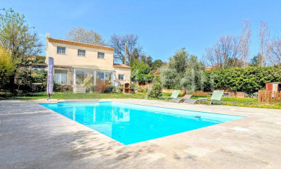 Just a few steps from the center of the village of Montauroux, discover this charming stone house of approximately 110 m² offering a magnificent panoramic view of the valley and the surrounding hills. The house includes a living room with a fireplace and dining area opening onto a terrace with a view, a fully equipped kitchen, and an office/bedroom. Upstairs, you will find two bright bedrooms with a terrace and view, as well as a bathroom. On the top floor : a bedroom with a toilet and a balcony. The garden of approximately 1350 m² benefits from a beautiful sunny pool, a shed to be renovated, a terrace with a barbecue, and a parking area. There is also a storage room with a shower for the pool.
