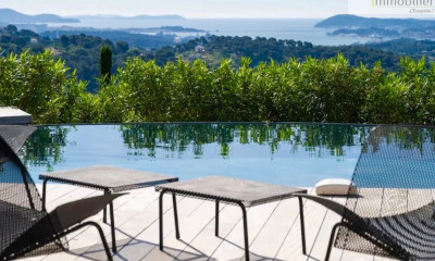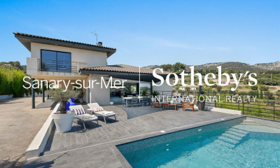 On the outskirts of Sanary-sur-mer, ultra-contemporary new 240m2 panoramic sea-view villa with meticulous finishes. Huge living room of almost 90m2 opens onto the kitchen, dining room and living room. The terrace encircles the house on one level over 300m2. On this level, a master suite with shower room and dressing room, a bedroom and a laundry room. Upstairs, 1 en suite bedroom and 2 bedrooms with 1 bathroom, each with access to the terrace. Suspended swimming pool overlooking the panorama. Closed garage for 2 vehicles and sheltered parking. Canal de Provence. Charlotte Borie 33 (0)6 10 79 37 33 / charlotte@kretzrealestate.com