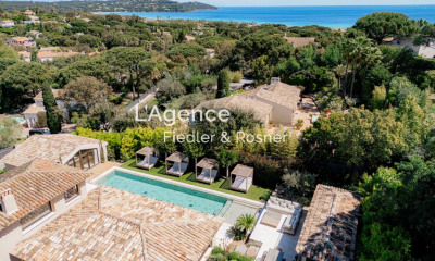181 m² villa - plot of a given surface of 1800 m2 - 4 bedrooms - 3 bathrooms + 1 independent studio with 2 bedrooms and 1 bathroom. Discover this recently renovated family vacation home, offering breathtaking sea views. Ideally located just a 5-minute walk from the famous Pampelonne Beach and the renowned Club 55, this property combines tranquility and proximity to must-see attractions. Fully air-conditioned and bathed in light, it features a bohemian-style living/dining room, creating a warm and welcoming atmosphere, with direct access to a modern and fully equipped kitchen. The house offers 4 elegant bedrooms, accompanied by 3 refined bathrooms, as well as a convenient laundry room. Outdoors, a spacious terrace invites you to relax, with its heated swimming pool for moments of relaxation in all seasons. A separate 40 m² studio apartment, comprising two bedrooms and a bathroom, offers even more space and privacy. A garage completes this offering, ensuring comfort and security. A true haven of peace for your stays with family or friends, combining charm, modernity, and a prime location! "Information on the risks to which this property is exposed is available on the Géorisques website: www.georisques.gouv.fr"