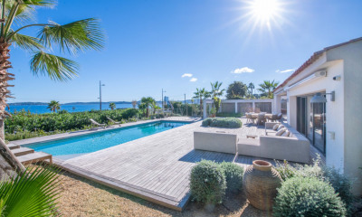 Excellence Immobilier offers this exclusive property for sale, located just minutes from the beaches of Sainte Maxime. Located in a gated estate near the town center, this villa boasts superb panoramic sea views over the port of Sainte Maxime and the village of Saint-Tropez. On the ground floor, it features a spacious living room with a fireplace, a dining room, and a kitchen, all with access to the terrace, a lounge area, and the pool. Further on, there are two bedrooms with sea views, each with its own bathroom, and an office. Upstairs, you'll find the master suite with a sea view, a dressing room, and a bathroom. On the ground floor, two bedrooms share a bathroom. There's a double garage.