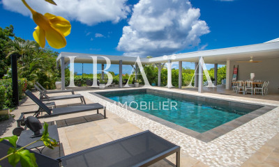 A small haven of peace on 1ha57 of land, this charming ochre-colored villa will enchant you with its beautiful volumes! It elegantly consists of a huge living area opening onto the huge terrace, the pool and the sea. This space includes a beautiful and large living room, an open plan kitchen, a beautiful bedroom facing the terrace and a spacious office. The adjoining studio has been transformed into a magnificent Master Bedroom of 60m². The last charm of this house is a separate bungalow of 45 m² with its own mini swimming pool, ideal for entertaining your friends or seasonal rental. A must-visit!