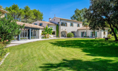 Just a short drive from the renowned market town of L'Isle-sur-la-Sorgue, this extraordinary estate lies amidst 36 acres of landscaped grounds and manicured woodland, offering an exceptional blend of Provençal charm and modern luxury. The property has been the subject of a masterful renovation of the highest calibre, where authentic materials meet sleek contemporary finishes to create an interior of remarkable refinement and comfort. Inside and out, the property exudes elegance and an inviting sense of grandeur - a Provençal retreat of rare distinction. Spanning approximately 600 m², the property comprises a grand bastide, an independent pigeonnier guest house, a caretaker's apartment, garage and carport, as well as a stone farmhouse offering untapped potential. The bastide features sun-drenched, superbly proportioned interiors designed with both style and comfort in mind. Traditional elements - exposed beams, natural stone accents, and wrought ironwork - blend seamlessly with the highest quality materials and finishes. Upon entering through the antique door, a large foyer leads to the kitchen on one side and the living spaces on the other. The custom-designed kitchen combines outstanding craftsmanship, including a bespoke Murano glass chandelier, with high-end Miele appliances. It flows through to a dining area framed by floor-to-ceiling windows overlooking the grounds, creating a stunning backdrop for meals and gatherings. On the opposite side, the spacious sitting room, centred around a handsome stone fireplace, offers an inviting space for entertaining, with an adjoining home cinema. The ground floor also accommodates the principal suite - a large double bedroom with walk-in dressing room and a lovely ensuite bathroom fitted with a bathtub and walk-in large shower. A second lavish suite is located on this floor, with adjoining dressing room and bathroom. A magnificent stone spiral staircase, worthy of a château, leads up to the first floor. The first floor comprises: double bedroom suite with generous dressing room and ensuite bathroom featuring walk-in shower, double vanity, and gorgeous fittings; family suite includes two bedrooms, a shared dressing area, and an ensuite bathroom. Completing the bastide are an office, gym with adjoining shower room, wine cellar, and laundry room. A self-contained apartment provides comfortable accommodation for staff, family, or guests. With its own living area, equipped kitchen, bedroom, bathroom, and private parking, it ensures independence without compromising style. The sense of grandeur is immediate - tall iron gates open onto a superb driveway lined with perfectly sculpted cypress trees. The 36-acre grounds have been landscaped with great care and diligence, dotted with mature oaks, olive and almond trees, and vast expanses of lawn. The grounds offer a peaceful setting for outdoor living. A 13 m x 6 m swimming pool is surrounded by a vast terrace in Sinai stone, complete with a vast adjoining shaded summer living area with a fully equipped kitchen and barbecue. The pigeonnier guest house provides two independent bedrooms with a shared bathroom, ideal for guests. The property also includes a 130 m² six-car garage and a large carport providing additional covered parking. A 176 m² independent stone bergerie remains to be renovated, offering exciting potential as a guesthouse, artist's studio, or wellness retreat. The renovation has been carried out to the highest standard. Amenities include: underfloor heating and cooling; air-conditioning for additional comfort; electric shutters; Schüco aluminium joinery; home automation system; thermodynamic hot water heating; mains water with softener; canal water for irrigation; high-tech security system; and a regulation-compliant septic tank. An estate of rare scale and refinement, this property embodies the very best of modern Provençal living: architectural grace, luxurious materials and impeccable finishes, al