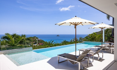 Charming villa nestled at the very tip of Pointe Milou, this property offers a unique setting for unforgettable moments in Saint-Barthélemy. Bathed in sunshine, cooled by the ocean breeze, and open to an exceptional panoramic view, this seafront villa comfortably accommodates up to four guests. Perfect for a family or a small group, it combines authentic charm with modern comfort for a peaceful getaway in Saint-Barth. The house features two bedrooms, each with a queen-size bed and a private en-suite bathroom. One of the bedrooms is located in the main house, while the second is set in a separate bungalow, offering complete privacy. The spacious living room opens onto a fully equipped kitchen, and the dining area can seat up to six people. Large glass doors let in plenty of natural light and offer stunning ocean views. Outside, a private terrace with a pool invites you to relax in a peaceful and secluded setting.
