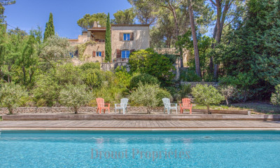 Tucked up against the rocks on a hillside, this house presents 160 sq.m of living area exuding Provençal charm. Boasting commanding south-facing views, the property is equipped with several terraces from which you can admire the landscape at any time of day. The interior consists of four bedrooms and a welcoming living area overlooking the natural surroundings. Outside, there is a swimming pool, a pétanque area in the shade of pine trees and a natural garden that follows the contours of the hillside. This intimate house nestling against the rocks is a perfect find for all lovers of tranquility, sunshine, views and cicadas.