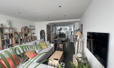 Maison BUCHY offers you a completely renovated 70s villa with absolute charm. Located in the Pironnière district, a few steps from the shops and the beach, discover this family villa of 125 m2 of living space. A real favorite from the entrance, you will be captivated by the renovation carried out with taste and the quality materials used. On the ground floor, it consists of an entrance, a laundry room, two bedrooms and a shower room. On the first floor, you will appreciate the space of the custom-fitted & equipped kitchen opening onto a large living room with fireplace and the dining room. On this same level, a space dedicated to the master suite composed of its dressing room and its shower room. To complete this elegant villa and for more comfort, you will have a garage, a large terrace and a garden, you will undoubtedly be seduced by its mix of old and contemporary.