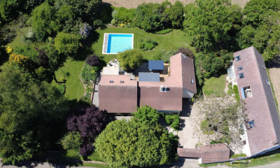 UNDER CONTRACT, Thank you for your trust. 1 hour 30 minutes from Paris, 11 minutes from Sens and its train station, in a completely quiet hamlet: a rare, remarkably renovated property of 260 m², with 5 bedrooms, outbuildings, nestled at the bottom of a valley, on its pleasant 6000 m² garden and its swimming pool with a dominant view over the valley. Hidden from view, "LE CLOS DES BASSES VIGNES" is accessed through a large remote-controlled gate. A large reception courtyard provides access to all the buildings and allows vehicles to be parked under a large canopy. A terrace leads to the house and opens onto a spacious 31 sq m kitchen with a dining area. Adjoining this is a magnificent 67 sq m cathedral-ceilinged living room with oak parquet flooring, a small sitting room extending onto the garden, and a dining area. Discreet beams, a beautiful 6.50 m ceiling height, skylights, and well-designed underfloor heating throughout the ground floor ensure a pleasant, constant temperature. A mezzanine office with a modern wrought-iron staircase leads to a dining area. A storage room off the kitchen includes a toilet and shower room. A first staircase leads to a 40 sq m master bedroom with exposed beams, light oak parquet flooring, and three discreet dressing rooms. An en-suite shower room and toilet are located next to this bedroom, which features an industrial-style glass partition overlooking the living room. A second staircase, leading from the mezzanine, opens onto a wide hallway with a sofa bed, providing access to two large bedrooms, a bathroom, and a toilet. The landing beyond features a spiral staircase leading to two further attractive bedrooms on the ground floor, perfect for accommodating guests. These guest rooms, each measuring 21 m², also have direct access to the reception courtyard. This property underwent a complete renovation in 2010 and 2020, including underfloor heating for the ground floor, perimeter insulation and reinforced roof, oil boiler and Morvan wood boiler with automatic switching, double glazing and bay window, roofs of the house and some outbuildings, complete electrical rewiring and repainting, individual sanitation... A harmonious and successful blend of authenticity and charm with beautiful original materials and others recently installed, offering a rare contemporary and natural interior space. Very large living and sleeping areas with these 5 bedrooms ranging from 15 to 40 m². Let's now take a tour of the front courtyard and its walls plastered with natural terracotta lime: a sunny terrace for spring in front of the kitchen, a covered dining patio protected from the sun and weather by thick walls, a first vaulted cellar at the ideal temperature, an old working well with its ancient crank. Two small outbuildings with attics for bicycles and gardening equipment. A utility room used as a boiler room and laundry room with garden access. First open barn of 90 m² with cemented floor to shelter 4 vehicles, and 2nd barn of the same size for your hobbies. On the garden side, there is a lawn on the east side, and climbing this former wine-growing hillside (which had up to 120 hectares of vines before phylloxera): a beautiful dominant view over the countryside, these meadows and its many nearby forests. Pleasant recent swimming pool of 11m x 5.5m with solarium, pool house, toilet and heat pump, technical room and automatic water treatment. Another terrace with a pétanque court offers exceptional views extending to the Yonne Valley. An orchard with numerous fruit trees follows. Further down, several cellars are carved into the chalk of the hillside, along with another outdoor garage and perennial flowerbeds along the exterior walls. A rare little hamlet made up of small farms and old stone walls, occasionally crossed by a car. Olympian calm with a rare rural and natural environment allowing for walks or bike rides through the surrounding woods, all just 10 minutes from civilization. "LE CLOS DES BASSES VIGNES" is an exceptional property, rarely available for sale. It represents the perfect blend of modernity and authenticity. Come and discover this unique residence and treat yourself to the luxury of a peaceful life in harmony with nature. Numerous photos and information are available on our website. Contact LAURENT SINEAU for information. Information on the risks to which this property is exposed is available on the Géorisques website: www.georisques.gouv.fr