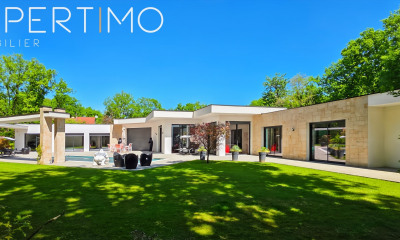 With an open view this furnished house 433.27 m² (about 4658 ft²), built in 2015, with a land size of 3349 m² (about 0,83 acres) has 12 rooms including 4 bedrooms, 2 bathrooms and 5 toilets. It has a living room 125 m² (about 1344 ft²), a Fitted kitchen/dining room, a swimming pool, a terrace, 2 garages and 6 parkings. Heating : Individual underfloor.