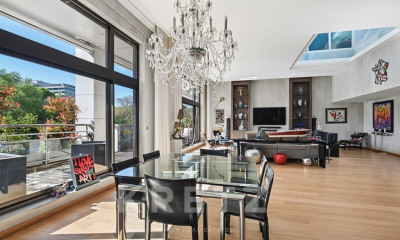an exceptional property of 500m² in the heart of downtown Levallois-Perret with 188m² of adjoining offices. In absolute calm, out of sight, the interior patio of 127m² serves all the rooms on the ground floor which consists of a large reception room of 80m², a family room, a large office, a dining room dining and an open kitchen, as well as a swimming pool, hammam and sauna. Upstairs, a 50m² master suite opening onto a 41m² terrace as well as 3 beautiful bedrooms, each in