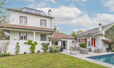 In the heart of Parc Thérèse, overlooking the city, an exceptional house with a surprisingly contemporary design, designed in 1928 by visionary architect Pol Abraham. Inspired by the imaginary ocean liners of the interwar period, this modern villa offers panoramic views of the surrounding landscape. Erected like a monumental sculpture, it reveals bold curves on the street side, while the rear opens onto pure, minimalist lines. Spread over three levels and 210 sqm, the garden level features two bedrooms, an office, a laundry room and a garage. Upstairs, the living area is organized like a cocoon protected from view: a superb living room with dining area, bathed in light thanks to large openings, and warmed by an open fireplace. This level gives access to an intimate terrace, ideal for private lunches. A large eat-in kitchen also opens onto a balcony. On the upper floor: a bright master suite with bathroom and shower, a second large bedroom, both opening onto the balcony, and a third bedroom with storage space. On the landing, a large shower room and toilet complete this level. An outside staircase leads to the roof terrace, offering breathtaking panoramic views. Enclosed parking is located beneath the house. Finally, a garden with two landscaped areas surrounds this unusual home, which connoisseurs will appreciate to the full. Agency fees payable by vendor - Montant estimé des dépenses annuelles d'énergie pour un usage standard : 4170€ ~ 5710€ - Les informations sur les risques auxquels ce bien est exposé sont disponibles sur le site Géorisques : www.georisques.gouv.fr - Béatrice LEBLANC-BARBEDIENNE - Agent commercial - EI - RSAC NANTERRE 530 708 999 Agency fees payable by vendor - Béatrice LEBLANC-BARBEDIENNE - Agent commercial - EI - RSAC NANTERRE 530 708 999