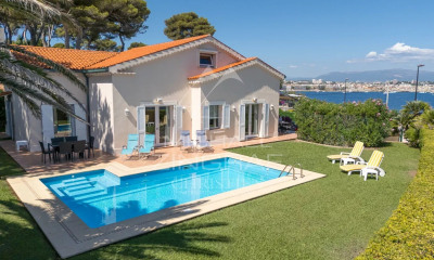 Discover this stunning 385 m² villa offering panoramic sea views, ideally located in a private domain on the western slopes of Cap d'Antibes. Just steps from the beaches and nestled in a peaceful, preserved environment, this property combines elegance and comfort. On the upper floor, the living areas open onto a large terrace with unobstructed views, while the spacious bedrooms are ideally arranged, each with en-suite bathrooms and shower rooms. An additional lounge and a second kitchen provide a welcoming space for relaxing with family or friends. On the top floor, a cinema room and a luxurious master suite with a bathroom enhance the unique experience of this property. The beautifully landscaped 1,200 m² garden invites relaxation with a heated 10x5 m pool and a pétanque court. A double garage completes the features of this villa, which combines absolute tranquility, luxury, and comfort in an exceptional setting on the French Riviera.