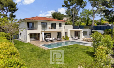 Ideally located in a very residential area, just steps away from the Cannet town hall and only 2 km from the beaches and ports of Cannes, at the heart of the 7 hills gently sloping, this villa, built in the purest Californian style, offers exceptional panoramic sea views from the Lérins Islands to the Estérel massif. The villa, designed by a renowned architectural firm, includes a spacious living room with sea view, an open kitchen also with sea view, 5 magnificent bedrooms, including a master bedroom, 2 bathrooms, 3 shower rooms, an office, and a large wine cellar. Most of the rooms have a sea view. A fabulous infinity pool complements this exceptional property, along with a Hammam. Landscaped garden and enclosed garage for two cars. High-end features and materials. Energy performance diagnosis: 63 – A Greenhouse gas emissions: 2 - A Estimated annual energy costs for the home: 1630 to 2206 euros. Transaction fees including tax payable by the seller. Information on the risks to which this property is exposed is available on the Géorisques website: www.georisques.gouv.fr The luxury real estate market on the French Riviera is one of the most attractive in the Mediterranean region. Vacation homes and secondary residences on the French Riviera not only offer an incomparable style and quality of life but also represent, in light of the international economic situation, a safe investment and a smart retirement project, especially at premium addresses. Le Cannet is a residential area north of Cannes, composed of magnificent villas and luxurious residences on the heights. Just a few minutes from the center of Cannes, Le Cannet offers village life with its shops and cafes. The proximity to transportation, major highways, and supermarkets makes daily life easier.