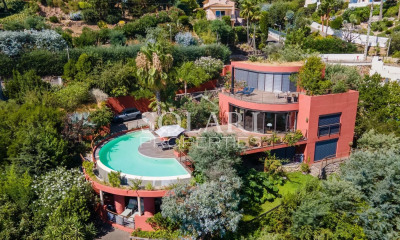 Discover this superb architect villa completely renovated, offering a luxurious living environment just 3 minutes from the city center. With an area of 302 m² on a plot of 2000 m², this property offers a breathtaking view of the islands of Lérins and Estérel. This exceptional property has 4 masters each with dressing room, private bathroom and individual terrace, for comfort and total privacy. A bedroom / office with bathroom and toilet. On the main level a superb American kitchen, fully furnished and equipped, open to a living room bathed in natural light thanks to the many bay windows and enjoying a superb ceiling height. An elevator serves the three levels of this villa. On the relaxation side, a magnificent infinity pool a jacuzzi with its pool House including a summer kitchen, an outdoor shower, toilets. The 97 m² garage is equipped with an electric charging station with a multipurpose space of 70 m² transformed into a cinema room. Fee charged to the seller ENERGY CLASS: 45 A CLIMATE CLASS: 1 A (Established in 2021) Estimated average amount annual energy expenditure standard use, energy price base year 2021 between €792 and €1071 Information on the risks to which this property is exposed is available on the Géorisques georisques.gouv.fr website