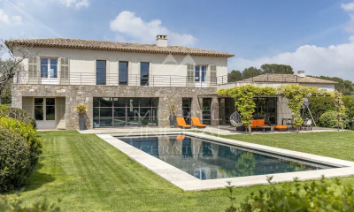 Mougins. magnificent new contemporary villa of 493 m² with outbuildings located in a very residential area with excellent exposure and beautiful views of the old village and hills. This luminous, quality villa with top-of-the-range features is set in a pleasant 4,930 m² garden with century-old olive trees and swimming pool. It features a triple reception room with fireplace, a large fully-equipped kitchen, 4 spacious en-suite bedrooms and an independent apartment. Home cinema, fitness center, evolutionary rooms. Triple garage. Reduced notary fees No less than two golf courses in Mougins, two of Europe's finest, the Royal Mougins Golf Club and the Golf Country Club de Cannes, more than 40 restaurants, some 20 art galleries, painting studios and the renowned Mougins School. The harmony of colors and the quality of light in Mougins have seduced many artists and celebrities, including Picasso, Cocteau and Edith Piaf. Christian Dior gave birth to his most prestigious collections. An experienced team to advise you for over 25 years in the Mougins area. This document is for information only. It has no contractual value. Information on the risks to which this property is exposed is available on the Géorisques website: georisques.gouv.fr
