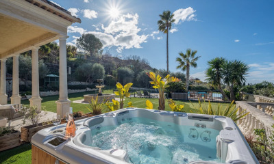 NEW – Nice West – Exclusive Listing We are delighted to present this magnificent prestige villa offering approximately 300 m² of living space, nestled on a landscaped plot of over 3,000 m² and boasting spectacular panoramic views of the sea and mountains. Ideally located just 15 minutes from the airport, the TGV station, the city centre and the beaches, this family property stands out for its privacy, serene setting, and high-end amenities. The villa opens onto a vast, light-filled living room, extended by large sliding glass doors leading to a South-facing terrace and a heated infinity pool. The spacious, fully equipped kitchen also includes a pantry. On the same level, a ground-floor suite with office area, shower room and walk-in closet benefits from direct access to the terrace and garden. Upstairs, you will find a master suite with a large bathroom featuring a whirlpool bathtub and a walk-in closet, as well as a second bedroom with its own shower room and dressing room. Both rooms open onto a beautiful South-West facing terrace. Separate toilets. On the garden level, an independent fourth bedroom and several additional spaces complete this floor: a large wellness area with jacuzzi, hammam, massage room, shower rooms, and a laundry room. Premium features include: ducted reversible heating, pocket sliding glass doors with mosquito screens, enhanced security system, and noble materials (marble, mosaic, wrought iron, balusters). The property also offers several secure parking spaces. A rare opportunity combining an intimate, secluded environment with premium features and a highly sought-after location. Seller’s fees apply. Property tax: €4,401 per year. Information on the risks to which this property is exposed is available on the Géorisques website: georisques.gouv.fr