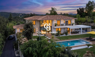 Located in Roquefort-les-Pins, in a highly sought-after residential setting and enjoying a dominant position at the end of a cul-de-sac, this exceptional property offers open views over the surrounding countryside, in absolute tranquility while remaining within immediate proximity to the village centre and its amenities. This newly built contemporary villa of approximately 323 sqm captivates with its generous volumes and remarkable natural light. The ground floor reveals a spectacular reception area of around 120 sqm, comprising a spacious living room, dining area, and a sleek open-plan kitchen, all extended by large pocket sliding glass doors seamlessly opening onto the outdoor terraces. A back kitchen/laundry room completes this space. An elegant ground-floor master suite with walk-in dressing, bathroom, shower, and toilet ensures absolute comfort. Upstairs, five en-suite bedrooms each benefit from their own shower room, guaranteeing privacy and refinement. A vast additional room with kitchenette and toilet can be arranged according to your needs as an extra bedroom, games room, office, or versatile living space. Set on approximately 3,115 sqm of landscaped grounds, the property boasts high-end outdoor amenities, including an infinity pool with open views, a fully equipped pool house (shower and toilet), a convivial fire pit area, and a pétanque court. Designed for an exclusive lifestyle, the villa also features a wellness area with gym, sauna and spa, a game room, a closed garage and numerous parking places. A rare property combining contemporary elegance, premium features, and a privileged living environment.