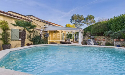 Tastefully restored 18th-century stone property with swimming pool with a mature garden in a good neighbourhood walking distance to Valbonne village. The interior of this charming historic building is renovated to a high standard in a contemporary modern style while retaining original features of old world charm.Large open plan living space with undefloor hearing and reversible Air con with a designated formal dining area and open plan kitchen all communicating with the outdoor terraces,garden and pool. On the first floor double master suites with dressing and bathrooms. On the second floor 2 possibly 3 bedrooms and a large office.