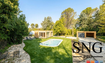 In a quiet environment, with south-west exposure this house 174 m² (about 1870 ft²), built in 1965, with a land size of 2396 m² (about 0,59 acres) comprises 8 rooms including 6 bedrooms and 1 bathroom. It is provided with a living room 17 m² (about 183 ft²), with dining room 21 m² (about 226 ft²), with a Fitted, with a swimming pool, with a terrace and with a garage. Heating : Gaz radiator.