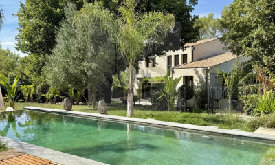 Located in the sought-after Country Club area, just 5 km from the historic center of Aix-en-Provence, this elegant contemporary house of 240 sqm, built in 2014, offers a ????? and privileged living environment. Set in the heart of a beautifully landscaped 4,000 sqm plot, carefully planted with olive trees and Mediterranean vegetation, this green haven features a lovely 11 m x 4.5 m swimming pool bordered by an exotic wood terrace. A pool house and a pétanque court complete this outdoor space, perfect for relaxing and enjoying convivial moments. The interior impresses with its generous volumes and natural light. A spacious open-plan living area, bathed in sunlight, includes a living room with an insert fireplace and a welcoming dining area. The contemporary kitchen opens onto a pantry and a laundry room, both connected to a double garage. A study/lounge, which can easily be converted into a home cinema, as well as a master suite with a walk-in wardrobe and a bathroom (bathtub and walk-in shower), complete this level. An independent studio with private access offers multiple possibilities: guest space, office, or separate accommodation. Upstairs, three bedrooms, each with its own shower room, open onto a wooden terrace overlooking the garden. The house benefits from high-quality features: underfloor heating and cooling system, sliding aluminum pocket doors, electric roller shutters, and a south-facing orientation for optimal sunlight. A well-maintained, turnkey property in a highly sought-after residential environment, just moments from the center of Aix-en-Provence and all amenities. Ideally located 15 minutes from Aix TGV station and 20 minutes from Marseille Provence Airport.