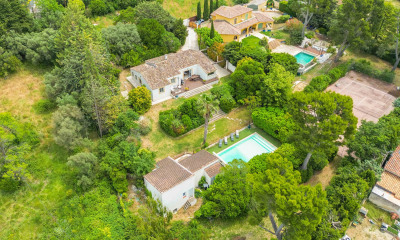 For sale in Allauch, contemporary villa with 3 bedrooms, a swimming pool, and open views. Set in a dominant position in the heart of the village, this property stands out for its architecture, generous volumes, and peaceful, privileged setting. Built over two levels, the property offers a total surface area of 286 sqm, comprising a 241 sqm main house, a fully renovated 44 sqm guest house, and a 38 sqm double garage. The ground floor of the main house features a spacious living area with impressive ceiling heights, combining a lounge and dining room filled with natural light and opening onto a large terrace with an infinity pool and unobstructed views. The open-plan kitchen, adjoining the living room, opens onto a shaded patio, ideal for outdoor dining. A master suite completes this level, featuring a Jacuzzi bathtub, a shower, and a walk-in dressing room. Upstairs, a mezzanine overlooks the living area and leads to the sleeping quarters, comprising bedrooms with built-in wardrobes and a bathroom. Perfectly renovated, the 44 sqm guest house offers a fully independent space including a living room with kitchen, a bedroom, a shower room, and a dressing room. Ideal for hosting family and friends or for a rental investment. The beautifully maintained garden offers several relaxation areas: outdoor lounge, climate-controlled pergola, barbecue area, and a double garage at the foot of the villa. This property combines elegance, comfort, and an exceptional lifestyle in one of the most sought-after areas of Allauch.