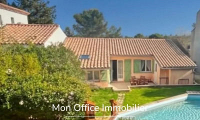 With north-south-east-west exposure this house (Contemporary house) 145 m² (about 1559 ft²), built in 1982, with a land size of 670 m² (about 0,17 acres) has 6 rooms including 4 bedrooms and 2 toilets. It has a living room, dining room, a Fitted, a swimming pool, a terrace and 2 parkings. Heating : Reversible airconditioning.