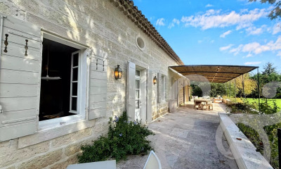 Privately set at the end of a small lane, this handsome stone property enjoys an attractively landscaped garden of 1,671m², featuring a swimming pool surrounded by a lawn and colourful flower beds filled with a Provencal planting scheme. Built in the traditional farmhouse style, this family home has been constructed by local craftsmen to an exacting finish. It offers over 280m² of living space within a total build of 365m². The impressive reception rooms comprise a spacious, bright and welcoming sitting room and a stunning kitchen/dining room featuring exposed beams that leads out onto a covered terrace, ideal for summer living. There are a total of six en-suite bedrooms including the master suite which is on the ground floor benefitting from a large dressing room and well-appointed bathroom. This is a delightful home, where you will find all the charm of Provence.