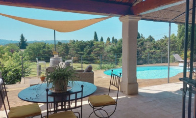 In a sought-after area of ??Saint-Rémy-de-Provence, discover this ideally located, single-story house boasting beautiful views of the Alpilles mountains. Recently renovated, it offers approximately 200 sq m of living space, including a large, bright living room with a mezzanine/office area and cathedral ceiling, a fitted and equipped kitchen with a dining area, three bedrooms on the ground floor, one of which is a suite with an en-suite bathroom/WC, as well as a laundry room, a separate WC, and a separate apartment that can be made independent, featuring a large living room/equipped kitchen and an en-suite bedroom with a shower room. Outside, you will enjoy a beautiful, peaceful garden with a large terrace shaded by a pergola, offering stunning unobstructed views of the Alpilles. There is also a lovely area with a heated swimming pool and summer kitchen. A garage and parking space complete this property. A rare find on the market, contact the Saint-Rémy agency quickly at +33 4 90 92 03 93. Envoyer des commentaires Panneaux latéraux Historique Enregistrées
