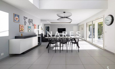 With south-west exposure this house 261 m² (about 2806 ft²), built in 2023, with a land size of 1073 m² (about 0,27 acres) has 6 rooms including 4 bedrooms, 1 bathroom and 4 toilets. It has a living room 68 m² (about 731 ft²), a Fitted kitchen/dining room, a swimming pool and 4 parkings. Heating : Individual.