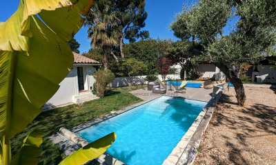 In a quiet environment, with an open view and south exposure this house 265 m² (about 2849 ft²) comprises 6 rooms including 3 bedrooms, 3 bathrooms and 4 toilets. It is provided with a living room 128.7 m² (about 1384 ft²), with a Fitted, with a swimming pool and with a garage. Others : fireplace, cable television.