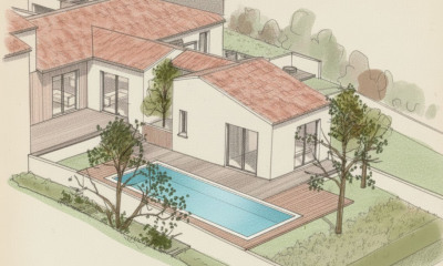 With south exposure this house 110 m² (about 1182 ft²), with a land size of 480 m² (about 0,12 acres) contains 5 rooms including 3 bedrooms and 1 bathroom. It is equipped with a None and with a cellar. Heating : Gaz.