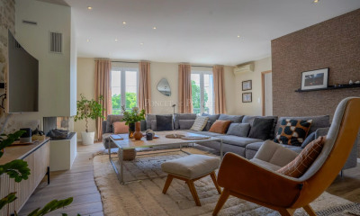 Charming Stone House, Pool, Intimate Courtyard, Rare Spaciousness Located only 10 minutes from the historic center of Uzès, this majestic 472 m² stone property captivates with its authentic character, discreet elegance, and artistic ambiance. Tastefully restored, it seamlessly blends contemporary comfort with Provençal charm, all within a peaceful, lush setting. A Private Outdoor Space, Blending Stone and Lush Greenery Behind its stone walls lies a sun-filled inner courtyard featuring an elegant swimming pool and several shaded relaxation areas. A raised terrace offers open views over the Mediterranean garden, planted with cypresses, wisteria, and other local flora. Rare Volumes and Gallery-Like Ambience On the ground floor, a spacious fully equipped kitchen opens onto a dining area, which flows into a generous living room. A discreet adjoining scullery offers additional space for storage, secondary preparations, or housing kitchen appliances. You’ll also appreciate a well-designed laundry room—practical and comfortable—with a washing area, storage, and folding space to simplify daily life. The interior is distinguished by its generous 472 m² layout, high ceilings, and warm ambiance. The grand living room, with exposed beams and light wood flooring, is both inviting and inspiring, blending antique furniture with contemporary accents. Bright Bedrooms with Timeless Charm The large,serene bedrooms preserve the soul of the home with wooden ceilings, lime-washed walls, natural stone floors, and views of the surrounding greenery. Each offers refined comfort and a soft, peaceful atmosphere. Nine bathrooms complete this exceptional property—perfect for a large family or seasonal apartment rentals. Key Features: 472 m² of living space in a quiet setting just 10 minutes from Uzès Tree-filled courtyard, private pool, multiple terraces High-end renovation with noble materials Rare volumes and exceptional charm Ideal as a main residence, second home, or boutique rental business. We have a complete file at your disposal. Contact : Pierre Beghin : 06 07 09 01 21. Information on the risks to which this property is exposed is available on the Géorisques website: www.georisques.gouv.fr