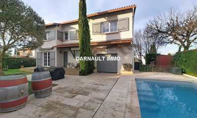 This house 140 m² (about 1505 ft²), built in 1970, with a land size of 586 m² (about 0,14 acres) comprises 6 rooms including 5 bedrooms, 3 bathrooms and 3 toilets. It is provided with a living room 42 m² (about 452 ft²), with a Fitted kitchen/dining room, with a swimming pool, with a terrace and with a garage. Heating : Individual.