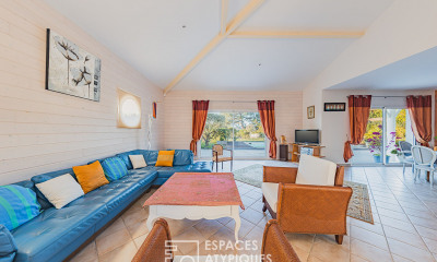 Located in the heart of Arcachon’s iconic Ville d’Hiver district, this charming 220 m² property offers a rare opportunity to enjoy a peaceful and refined lifestyle. Nestled on a quiet street, it perfectly combines character, comfort, and functionality. From the moment you step inside, you're welcomed by a stunning entrance hall with cathedral ceilings soaring to 5 meters, flooding the space with natural light. The spacious living area and open-plan kitchen flow seamlessly onto a beautifully landscaped garden—ideal for entertaining or relaxed family living. The home offers five bedrooms, including an elegant master suite featuring a custom walk-in closet and private bathroom. Two additional shower rooms serve the other bedrooms, ensuring comfort and privacy for all. A bright mezzanine provides a cozy reading nook or home office, while thoughtful built-in storage makes everyday life easier. Outside, a large workshop opening onto the garden invites multiple possibilities—be it a creative studio, guest house, or gym. A cellar and a garage complete the property. Set on a generous 1,030 m² plot with no overlooking neighbors, the home offers privacy and tranquility in an exceptional setting. Key features: impressive volumes, abundant natural light, quality finishes, and a prime location in one of Arcachon’s most sought-after neighborhoods.