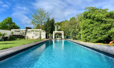 Bègles, ideally located in a magnificent street between La Barrière and the center, this stone house, mainly on one level, originally housing a former dental office, has been completely renovated and enlarged. Set back from the street, a parking area for 3 cars (plus motorcycles) and a garage allows direct access to the garden or the house. At the entrance, a clear perspective all the way to the bottom of the garden allows you to imagine the tranquility that results from it. On either side, an office/guest bedroom with custom storage and a bedroom with mezzanine face the front. Hidden from view, hidden behind a beautiful living room with fireplace, dining room and open fitted kitchen facing completely outside thanks to very large double-glazed wooden openings. A bedroom with mezzanine and a bathroom with shower and bathtub complete the street side. Hidden, WC, a laundry room, plenty of storage space and a boiler room with access to a partial cellar complete its functionality. A final space on the ground floor dedicated to the master suite with a double dressing room, toilets and a bathroom lit by a charming winter garden completes this level perfectly. A final bedroom nestled upstairs with an office space and a clear view of the garden adds to this wonderful ensemble. In this sumptuous landscaped garden of approximately 725 sqm, an outbuilding of 22 m2 with bathroom, a bowling alley and a pergola with a summer kitchen perfect this bucolic exterior. A heated swimming pool surrounded by a sunny terrace and a technical room at the back of the plot complete the package. Its seventies spirit linked to an incomparable quality of life gives it all the assets dreamed of by a family in a very popular area close to shops, schools and transport. Information on the risks to which this property is exposed is available on the Géorisks website: www.georisks.gouv.fr