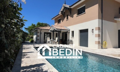 Discover this magnificent villa located in the sought-after neighborhood of Haurat, in close proximity to schools and sports complexes. Nestled on a beautiful landscaped plot, the property features a heated swimming pool and a spacious terrace of over 150 m², providing an ideal setting to relax in complete privacy, without overlooking. The interior of the villa consists of several distinct living spaces, with a light-filled cathedral living room, a functional separate kitchen, and a cozy night area on the ground floor. Upstairs, you will be charmed by an elegant master suite, accompanied by a very large mezzanine, perfect for a home office or leisure space. This exceptional property is located in a quiet and privileged neighborhood, ideal for families seeking tranquility and comfort. Do not miss this unique opportunity to acquire a villa that combines elegance and functionality.