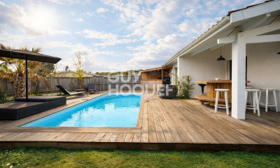 Michaël Zingraf Real Estate Bassin d'Arcachon is delighted to present, exclusively, this magnificent luxury home, built in 2021, which combines modernity and comfort. You will be charmed by its spacious, light-filled living room, featuring an open-plan kitchen, ideal for entertaining guests. Enjoy an exceptional outdoor living space with a large terrace, where a hot tub awaits you for unforgettable moments of relaxation. The house features a spacious master bedroom, perfect for offering you privacy and tranquillity, as well as two further bedrooms and a study, ideal for a dynamic family or for working from home. The modern and carefully landscaped garden, complete with a charming outdoor kitchen, complements this exceptional property, creating a peaceful and welcoming atmosphere. Situated in a highly sought-after area of Gujan, this property is close to sports facilities and schools, making everyday life convenient and enjoyable. Don’t miss this rare opportunity to acquire a home that combines luxury, comfort and a prime location. Contact us to arrange a viewing!