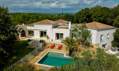 To the west of Montpellier, in a sought-after and preserved residential environment, this confidential property is set in the heart of a landscaped park of over 3,000 m², away from prying eyes. Behind its gate, an elegant alley lined with olive trees accompanies the discovery of an architect’s villa where every detail has been thoughtfully designed to offer a harmonious living environment, between light, volumes, and nature. From the entrance, the spaces open onto a spectacular reception room flooded with natural light. The architecture reveals its uniqueness, subtly showcasing volumes and perspectives. The double living room, extended by a fireplace area, interacts with an open dining room and a contemporary kitchen organized around its central island. Large folding bay windows naturally extend the living spaces onto the terraces, offering a lifestyle clearly oriented outdoors. The sleeping area has been designed to combine comfort and privacy. It features a master suite with dressing room and bathroom, two additional suites with private bathrooms, as well as a bright bedroom and office spaces opening onto the garden. Outside, landscaped arrangements perfectly structure the area and invite you to enjoy every moment. The generously sized swimming pool integrates elegantly into its environment, accompanied by a deck. A shaded terrace hosts convivial moments, while the pétanque space, complemented by a barbecue, extends the relaxation spirit. The garden, planted with Mediterranean species and fruit trees, also provides a space dedicated to installing a spa. An independent outbuilding of approximately 35 m² completes the estate, allowing family and friends to be accommodated independently or considering a rental or professional project. The amenities match the location: quality materials, reversible air conditioning, geothermal heating, fireplace, borehole, automatic watering, garage, and spacious parking areas. Close to the center of Saint-Georges-d'Orques, appreciated for its quality of life, the property benefits from a strategic location, just a few minutes from Montpellier, conveniences, and natural areas of the garrigue. Properties offering this level of amenities and such environment remain particularly rare in the sector. This place never fully reveals itself in pictures… it must be experienced. I invite you to contact me for a private and confidential visit.