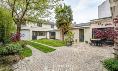 In the heart of Tours, this sumptuous late-19th-century private mansion stands near a majestic historic landmark. Spanning 390 sqm across four levels, it also features an outbuilding and a bucolic landscaped garden of nearly 150 sqm. This bourgeois residence elegantly combines the charm of the old with contemporary refinement. Sculpted moldings, wood paneling, solid oak parquet floors, and original marble fireplaces have all been enhanced through meticulous renovation, offering a harmonious and modern living environment. The front steps open onto a beautiful entrance hall with a perfectly preserved mosaic floor. From here, an elegant study is accessible. A double wooden door leads to a majestic living room, showcasing a high ceiling, a period fireplace with an insert, and a marquetry floor in Versailles style, adding warmth and character. Adjacent is a bright reception room with open views of the garden, connecting seamlessly to a modern kitchen with a sleek design and high-quality finishes. The main living spaces offer over 60 sqm. A graceful wooden and wrought-iron staircase leads to the upper floors. On the first floor, a spacious landing distributes three large bedrooms. The first has its own refined en-suite shower room. The second, over 33 sqm, could easily be divided into two rooms, while the third is located next to a cozy second shower room. The second floor offers three large rooms, including one currently fitted out as an 18 sqm dressing room. Another, at 25 sqm, could also be converted into two smaller bedrooms. A storage hallway leads to a final bathroom. This floor also provides access to a convertible attic, offering valuable extra storage or additional living space. On the semi-buried garden level, you'll find a practical utility area with a boiler room and laundry, as well as an additional room with its own shower. Currently used as a soundproofed music room, this space functions as an independent studio ? perfect for a home business or rental opportunity. A large vaulted cellar with impressive ceiling height completes the property. The garden outbuilding is full of charm, featuring cobblestone flooring and red brick window surrounds. It fits a small vehicle and includes attic space above. The courtyard, accessible via an electric gate, ensures easy access and offers additional parking. The landscaped garden is carefully curated with a rich variety of shrubs, flowers, and a remarkable tree, creating a peaceful oasis in the heart of Tours. Ideally located near schools, shops, and just a 5-minute walk from Tours train station, this exceptional property offers timeless elegance, the calm of a privileged setting, and all the benefits of dynamic city life. ENERGY CLASS: D / CLIMATE CLASS: D Estimated annual energy costs for standard use: between ?5,030 and ?6,850, indexed to 2021?2023. Contact: (EI) Magali Boudry ? +33 7 86 27 07 99 Commercial Agent registered with the RSAC of Tours under number 2021AC00288 Agency fees are paid by the seller. Information regarding potential risks for this property is available on the Géorisques website: www.georisques.gouv.fr