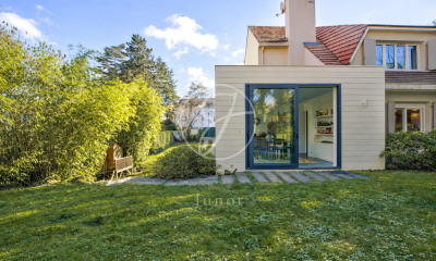 Located in the Gressets district, in a peaceful and green environment, this 182 sqm cottage (276.22 sqm on the ground) offers a serene and idyllic atmosphere, perfect for those looking to escape the hustle and bustle of the city. Only a 9-minute walk from Bougival train station, it is nestled in its superb landscaped, enclosed, not overlooked garden of 1,345 sqm. The entrance leads to the dining room and its large open and functional kitchen facing a west-facing terrace. The living room, which has a surface area of 41 sqm, benefits from a fireplace as well as the view of the terrace and its cleverly arranged garden. A pretty 15 sqm bedroom with its adjoining shower room benefits from the south/east-facing terrace. The upper floor consists of a landing which distributes two large bedrooms of 13 and 24 sqm and share a bathroom with shower. Then, the 25 sqm master suite offers a generous space with a double dressing room and a bathroom with private shower for optimal comfort. The full basement is organized into a 15 sqm laundry room, a 16 sqm storage room, a wine cellar and a tiled garage with two large parking spaces. This cottage is ideal for families, couples or people looking for a peaceful refuge in the countryside surrounded by birdsong. The property offers an exceptional natural setting, with opportunities for gardening and outdoor relaxation. A peaceful life while remaining connected to the city? Don't delay in visiting this rare gem! Swimming pool possible (PLU in UGd zone). Nursery and elementary schools 4 min walk, Collège Victor Hugo 12 min walk Bougival train station 9 min walk, Contact: Sophie 07 61 00 52 78
