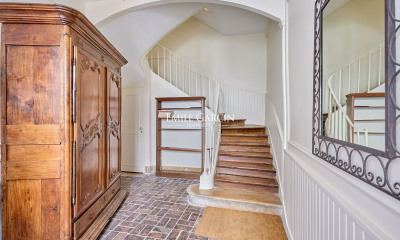 This bright Town House at the bottom of a co-ownership’s courtyard located in the Notre Dame neighbourhood offers 163 sqm of floor space and 133.82 sqm of living space as defined by the Carrez Law. It includes a living/reception room, a kitchen, a dining room, and a bedroom with a shower room and wc. Upstairs are 3 bedrooms, a bathroom and a separate wc. The ground floor comprises a spacious entry with cycle storage space accessing a vaulted cellar. Refurbishment is required to exploit the full potential. A stone’s throw from Place du Marché, a few minutes walk from the stations and the schools, and five minutes from a public car park with monthly rental options.