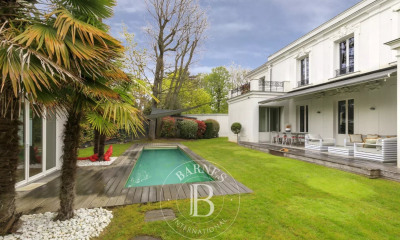 In a quiet environment, this house 308 m² (about 3311 ft²), built in 1900, with a land size of 1541 m² (about 0,38 acres) comprises 9 rooms including 6 bedrooms, 2 bathrooms and 3 toilets. It is provided with a living room 76 m² (about 817 ft²), with a Fitted separate kitchen, with a terrace, with 2 garages and with 4 parkings. Heating : Individual gaz radiator. Others : parquet floor, fireplace. Fees : 3.