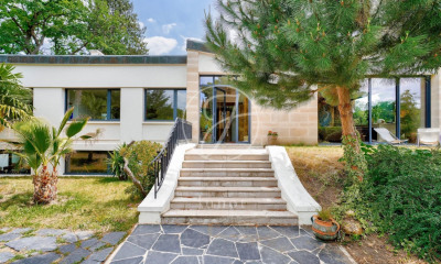 Ideally located on the Pelouses, Barnes International presents this house designed by architect Robert Jourdain in 1969. Built on a 1,450 m² plot, it offers 320 m² of living space, arranged as follows: The raised ground floor comprises an entrance hall leading to a bright living room with a fireplace, opening directly onto a south-facing terrace. This level also includes a kitchen and a study. The sleeping area features two bedrooms with storage, a bathroom, separate toilets, and a master suite with a bedroom and a shower room. The garden level offers a generous 50 m² room opening onto a “zen” garden, two bedrooms with closets, a home cinema / gym room, a shower room with toilet, two cellars, and a laundry room. A garden shed and a carport complete the property. Agency fees payable by the buyer: €100,000 Net seller price: €2,900,000 Your BARNES contact: Anne-Sophie Landraud +33 6 03 31 98 11 as.landraud@barnes-international.com Information on the risks to which this property is exposed is available on the Géorisques website: www.georisques.gouv.fr .