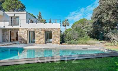 Nestled in the heart of the prestigious and secure Domaine du Cap Bénat, this Provençal villa of approximately 210 sqm offers an exceptional living environment, combining tranquility, natural surroundings, and proximity to the sea. Set on a beautifully landscaped plot of 4,057 sqm, the property stands out for its authenticity, generous volumes, and complete privacy. The garden level features an entrance hall leading to a spacious dining area and a bright living room with fireplace, both opening onto a shaded terrace. A separate kitchen, also opening to the outside, adds to the convivial atmosphere. Two large bedrooms with fitted wardrobes, each with its own shower room, a utility room, and a guest toilet complete this floor. On the upper level, the villa offers a beautiful master suite with a large bathroom, three additional bedrooms sharing a shower room, a small child’s bedroom or laundry room, and a separate toilet. Outdoors, the Mediterranean garden invites relaxation with its petanque court, multiple parking spaces, a double garage, and a workshop. The land is suitable for a swimming pool, offering further potential for enhancement. Just a short walk from the beaches and tennis courts of the estate, this elegant family property perfectly combines charm, comfort, and an exceptional location in one of the most sought-after areas of the Var coastline. Contact BARNES LAVANDOU Agency: +33 (0)4 94 41 37 17 lavandou@barnes-international.com This property is located in an area subject to mandatory brush clearing regulations. Information about the risks to which this property is exposed is available on the Géorisques website: www.georisques.gouv.fr