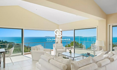 LE LAVANDOU - 6-bedroom villa 217m2- Sea view In a private, sought-after and secure estate, 5 minutes' walk from the beach, discover this magnificent villa, tastefully renovated throughout, offering spacious accommodation and a sea view. On the garden level, an entrance hall with fitted closets leads to three bedrooms with fitted closets, two of which have en-suite shower rooms and access to the terrace. An additional shower room, a separate toilet and a children's bedroom with shower room and bath opening onto the terrace complete this level. A laundry room completes this floor. On the first floor, accessible via the lift or interior staircase, you'll discover an entrance hall opening onto a charming garden planted with Mediterranean plants. The light-filled dining room opens onto a vast sea-view terrace, complete with dining area and barbecue for those special moments of conviviality. The fully equipped kitchen has direct access to a shaded terrace under a canisse, ideal for enjoying summer days in complete tranquillity. The spacious, light-filled living room with fireplace also opens onto the sea-view terraces. This level is also home to a bedroom with en-suite shower room, and a sumptuous master suite with dressing room, shower room and sea-view terrace. The exteriors are just as remarkable: infinity pool, summer kitchen with dining area, outdoor toilet, three garages and the possibility of parking several vehicles on the property. A perfect blend of elegance, comfort and the Mediterranean art of living, this villa is a true haven of peace - ideal for a large family or a high-end holiday rental operation. For further information or to arrange a viewing, please contact Marie PENNA on 06.11.68.46.86 or 04.94.92.76.99. Information on the risks to which this property is exposed is available on the Géorisques website: http://www.georisques.gouv.fr