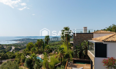 Originally designed as a hotel for the princes of Monaco, the Grimaldi family, this exceptional property then belonged to the L'Oréal group, then to Lord Hesketh, an emblematic figure of Formula 1. in April 2023, it enjoys a unique character and steeped in history. The villa offers approximately 500 m2 of living space, comprising 12 rooms including 6 en suite bedrooms, all open onto vast terraces with sea view. The penthouse on the top floor enjoys a remarkable panoramic view of Saint-Tropez and the bay up to Cap Camarat. Built on a landscaped garden of 4,430 m2 planted with Mediterranean species, the property has a heated pool of 18 x 8 m with pool house. Ideally located in the most popular area of Sainte-Maxime, it is a few minutes walk from the city center, the marina, the sea links to Saint-Tropez and beaches. By its architecture and its location, this rare property lends itself as well to a prestigious private residence as to a hotel or event project, offering a unique lifestyle on the French Riviera.