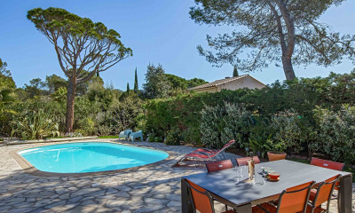 Discover this beautiful house for sale in the heart of Saint-Raphaël, offering 170 m² of refined living space in a peaceful, green setting. The property features a traditional Mediterranean architecture, captivating with its terracotta roof tiles and elegant lines. The residence is surrounded by lush vegetation, ensuring privacy and tranquility all year round. Step outside to enjoy a spectacular swimming pool, gracefully designed and bordered by a spacious stone terrace perfect for sunbathing or hosting outdoor gatherings. The landscaped garden and relaxation areas make this a perfect retreat for family and friends, all while soaking in the Riviera sunshine. Inside, comfort meets convenience with modern amenities, including electric shutters for optimal security and ease. This villa promises a lifestyle of relaxation and luxury, just minutes from the beaches, shops, and attractions of Saint-Raphaël.