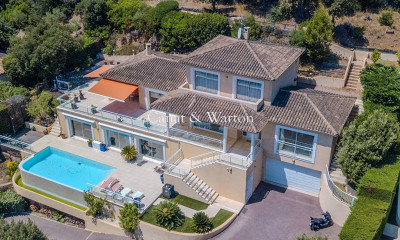 Enjoy breathtaking over 180-degree sea views and views on the the Esterel mountains from every window of this unique residence.Perfectly positioned, just steps away from the sea front and the beach. The villa of 212 m² is positioned on a 904 m² plot that’s not overlooked. This is a rare opportunity on the Côte d’Azur, offering both exceptional vistas, unique location and versatility of use. The entry level is thoughtfully laid out with sunlit living spaces that seamlessly capture the magnificent seascape, a kitchen opening out onto a large terrace, living room with high ceiling opening out on a sunlit veranda, 3 bedrooms and 2 bathrooms, all with sea views and a guest toilet. The garden level offers -A charming apartment featuring a living room, kitchen, bedroom, and bathroom. - An additional bedroom and bathroom, -A large customizable space with a kitchenette — easily convertible into either another spacious apartment, ideal for guests, a gallery, home studio, extra storage, or a garage. Noteworthy Features -A swimming pool can be realised in the garden -Multiple independent living options — perfect for hosting, multi-generational families, or rental income -Sought-after location in beautiful natural area, with easy access to amenities. This is a rare chance to acquire a property that combines unrivaled vistas, versatile living options, and true Côte d’Azur lifestyle.
