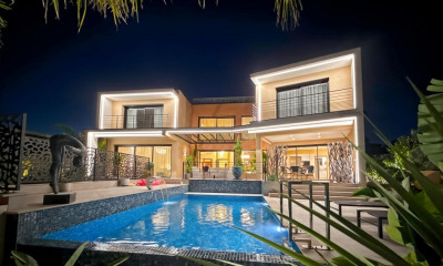SAINT RAPHAEL - Boulouris - Nestled at the end of a cul-de-sac in a sought-after residential area, this unique and commanding property enjoys absolute tranquility while offering proximity to the seafront and shops—a balance that has become particularly rare in this area. Set within a magnificent 3,500 sq m landscaped garden, the property impresses with its generous outdoor spaces and amenities: large sun-drenched terraces, a private tennis court, a fountain, a pétanque area, and expansive relaxation areas, all within a preserved green setting. The main villa, facing southwest, is organized around a bright, triple reception room, enhanced by a double-sided fireplace and large windows opening onto the exterior, offering unobstructed views of the Maures mountains to the west and the Estérel massif to the east. A separate kitchen completes this welcoming and elegant living space. On the garden level, there are two suites, a bright room that can be adapted to your needs (recreation room, workshop, office space), and a children's bedroom with an en-suite shower room. Upstairs, a bedroom boasts its own private terrace, ideal for enjoying the surroundings and the view. A separate, spacious, and functional two-bedroom apartment of approximately 70 sq m completes the property, perfect for hosting family and friends or accommodating a caretaker couple. A large garage, a well, ample storage space, and easy parking for several vehicles are also included. This charming property represents a rare opportunity in Saint-Raphaël: an exceptional location, a large plot of land, and significant potential for appreciation, making it ideal for a prestigious primary or secondary residence.