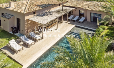 Located in the centre of Saint-Tropez, this villa on a plot of 8417 sq ft is composed on the ground floor of an entrance hall, large living room with open kitchen and dining room opening onto a large terrace and 3 bedrooms en suite. On the first floor a large master bedroom with bathroom, dressing room and private terrace. On the lower level a service room with bathroom, a laundry room, a technical room and a large dressing room. The exterior features a beautiful swimming pool and pool house, and a carport. “Information on the risks to which this property is exposed is available on the Géorisques website: www.georisques.gouv.fr ” DPE in progress. Property located in an area subject to compulsory brush clearance.