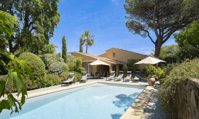 Built in 1890 and fully renovated in 2024, this historic “Belle Époque” property in Saint-Tropez beautifully combines the charm of the past with exceptional modern comfort. From the moment you enter, a majestic staircase sets the tone. The ground floor features an elegant double living room, a fully equipped kitchen, a dining room, an office, a bar area, and guest toilets. Upstairs, the spacious primary suite includes a full bathroom with a walk-in dressing room and offers a stunning view of the Saint-Tropez bell tower directly from the shower. Two additional bedrooms, each with its own shower room and toilet, complete this level, along with two terraces (east and west). On the lower level, a laundry room with technical space. An independent annex offers two 35 m² suites, each with a kitchenette, shower room, and toilet (converted garage). Outdoors, the 3,500 m² landscaped grounds feature a swimming pool with a pool house, creating an exceptional setting just a few minutes’ walk from the village center and the nearest beaches. A unique and rare property on the market, offering a prime location in the heart of Saint-Tropez. Underfloor heating, reversible air conditioning, fireplace.